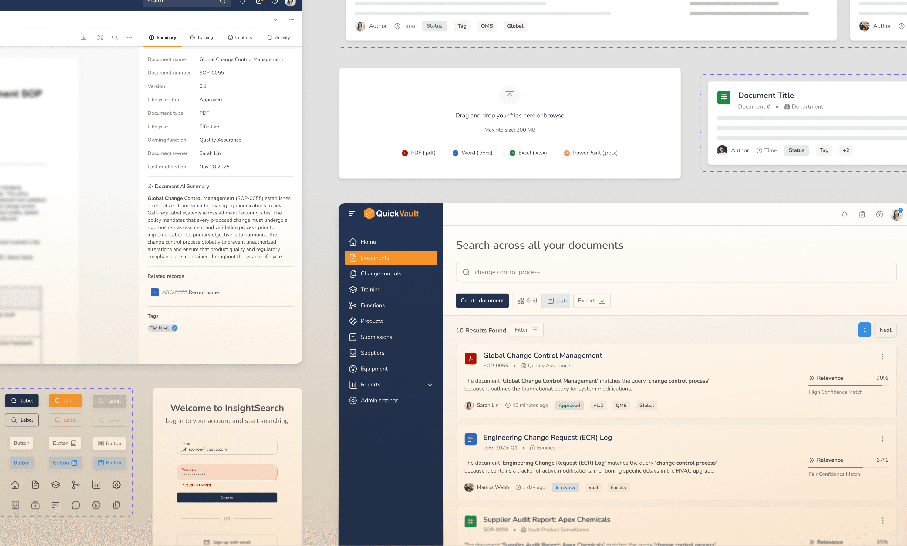 Delivering high-fidelity designs for the search interface while contributing new, scalable components to the existing design system. This ensured the new features were visually cohesive and provided a documented foundation for seamless integration into the broader QuickVault product ecosystem.